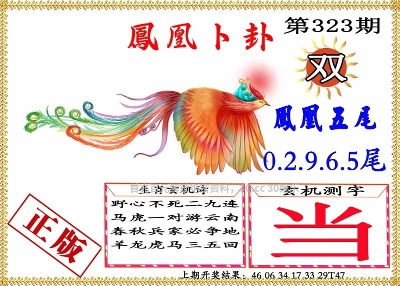 | 323期⑥肖 | 鸡马羊龙兔虎 | 开:鸡09中 |